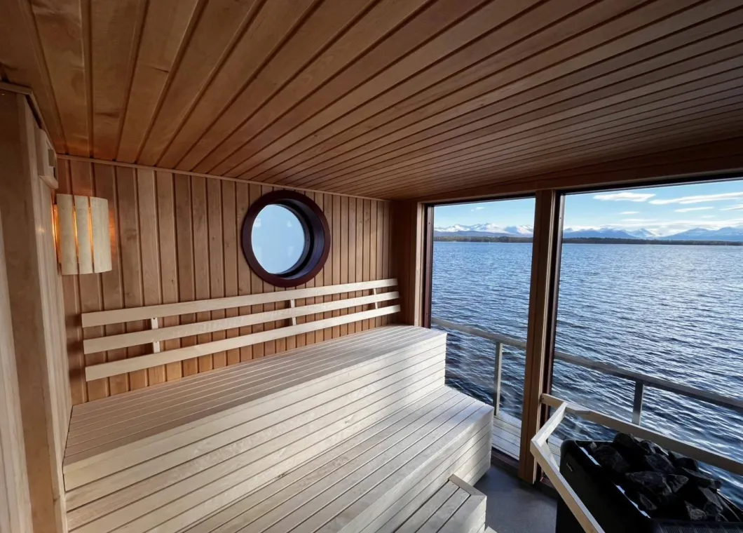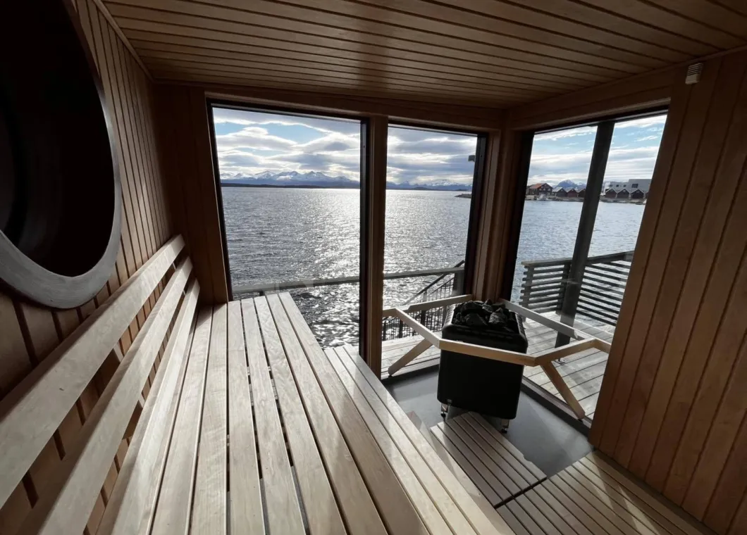 Vår nye badstue har en fantastisk plassering rett ved vannkanten, perfekt for deg som ønsker en kombinasjon av dampende varme og friske sjøbad. Fra badstuen kan du gå rett ut på en egen badestige som leder deg direkte ned i sjøen for en avkjølende dukkert. Badstuen har god plass til opptil 6 personer, noe som gjør den ideell for både vennegjenger, familier og par. For å sikre en privat og avslappende opplevelse, får dere hele badstuen for dere selv når dere booker (minimum 2 personer). Dette er den perfekte måten å pleie både kropp og sjel på, med orkesterplass til fjorden og det mektige Moldepanoramaet.